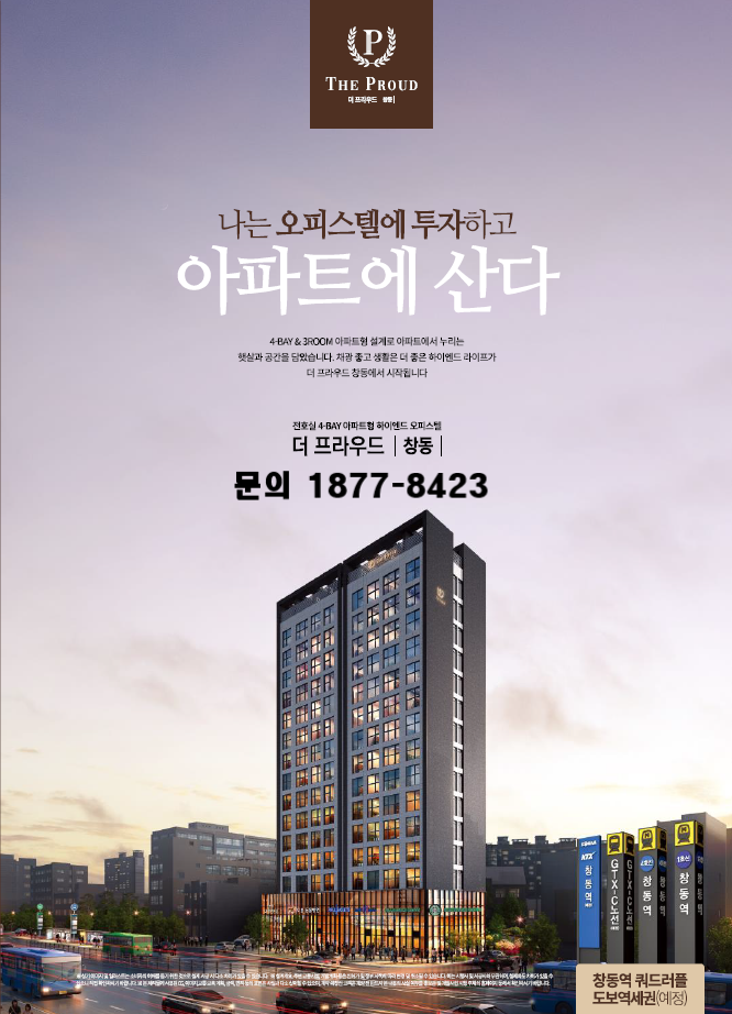 나는 오피스텔에 투자하고 아파트에 산다 전호실 4-BAY 3ROOM 구성인 더프라우드 창동 찾아주셔서 감사합니다.